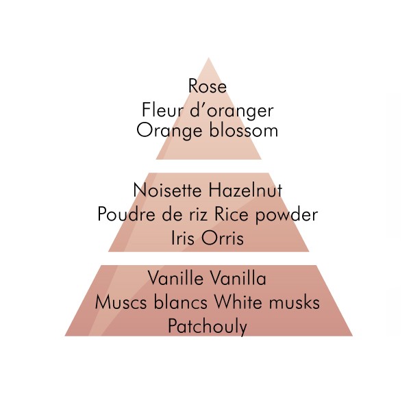 柔和的天鹅绒般真正圆润的香气,其中白色麝香的丝质音符装饰着橙色花朵,茉莉花和依兰花香的音符,以及香根草和广藿香的木香温暖的婉约弦。