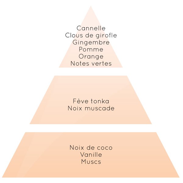 柑橘类水果的新鲜感与香料和蜜饯的温暖相结合,加上琥珀色和感性的白色麝香。