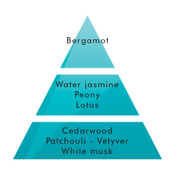 Harmonious fragrances drift through the air around you. A source of infinite tranquility where the floral freshness of lotus blossoms blend with green and aquatic bamboo scent to produce a perfect mellow and relaxing olfactory balance.