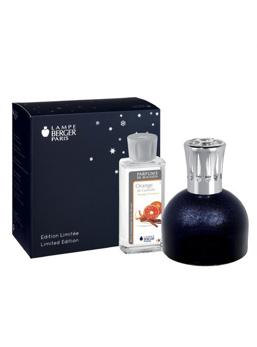 Includes 1 patented catalytic burner, 1 Essential Oil Orange Cinnamon and 1 Coffret Blue Diffuser